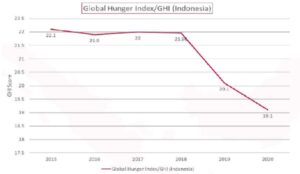 Based on data from the Global Hunger Index, the level of Hunger in Indonesia has decreased significantly from 2018 to 2020. Indonesia has experienced a decline since several years of being in a stagnation. But even though Indonesia has experienced a decline in its score based on Global Hunger Index data, the level of hunger in Indonesia is still much worse than other ASEAN countries such as Thailand, Malaysia, Vietnam, and the Philippines. To reduce hunger, of course the Government needs to ensure adequate nutrition and ensure that all people have access to food.